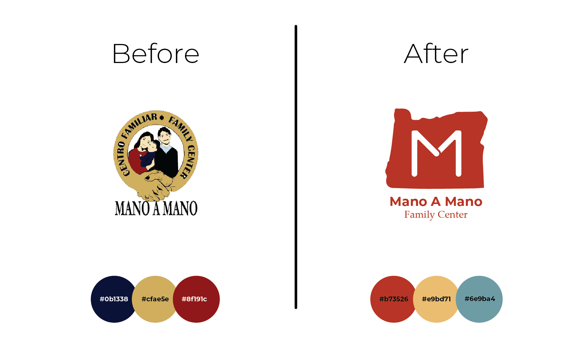 Mano A Mano Family Center has a long-standing presence in the Oregon community, and redesigning their brand while honoring that history was both a challenge and a privilege. I refreshed their identity with a more modern look while preserving key elements of their legacy, reflected in their updated color palette and overall design.
